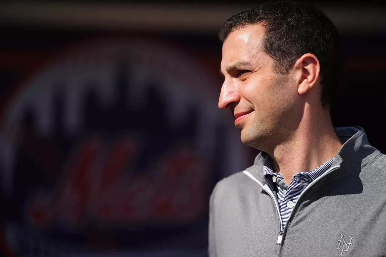 New York Mets President of Baseball Operations David Stearns looks on during spring training workouts at Clover Park on Feb. 16, 2026, in Port St. Lucie, Florida.